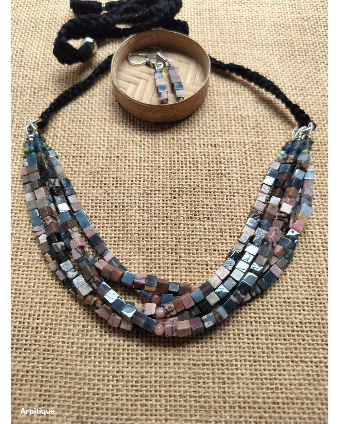 Previous Product Next Product Stone Necklace ₹1,150.00 length adjustable paired earrings 1 in stock Stone Necklace quantity Add to cart Category: Necklaces Chat on WhatsApp Description Reviews (0) Description stone name : black & brown tiger eye rectangle beads multilayer Reviews There are no reviews yet. Be the first to review “Stone Necklace” Cancel replyYour email address will not be published. Required fields are marked *Your rating * Rate… Perfect Good Average Not that bad Very poor Your review *Name * Email * Save my name, email, and website in this browser for the next time I comment. Related products Quick View Quick View NecklacesStone neckpiece ₹1,400.00 Add to cart Chat on WhatsApp Quick View Out of Stock Quick View NecklacesSilver replica neckpiece ₹800.00 Read more Chat on WhatsApp Quick View Out of Stock Quick View NecklacesStone neckpiece ₹880.00 Read more Chat on WhatsApp